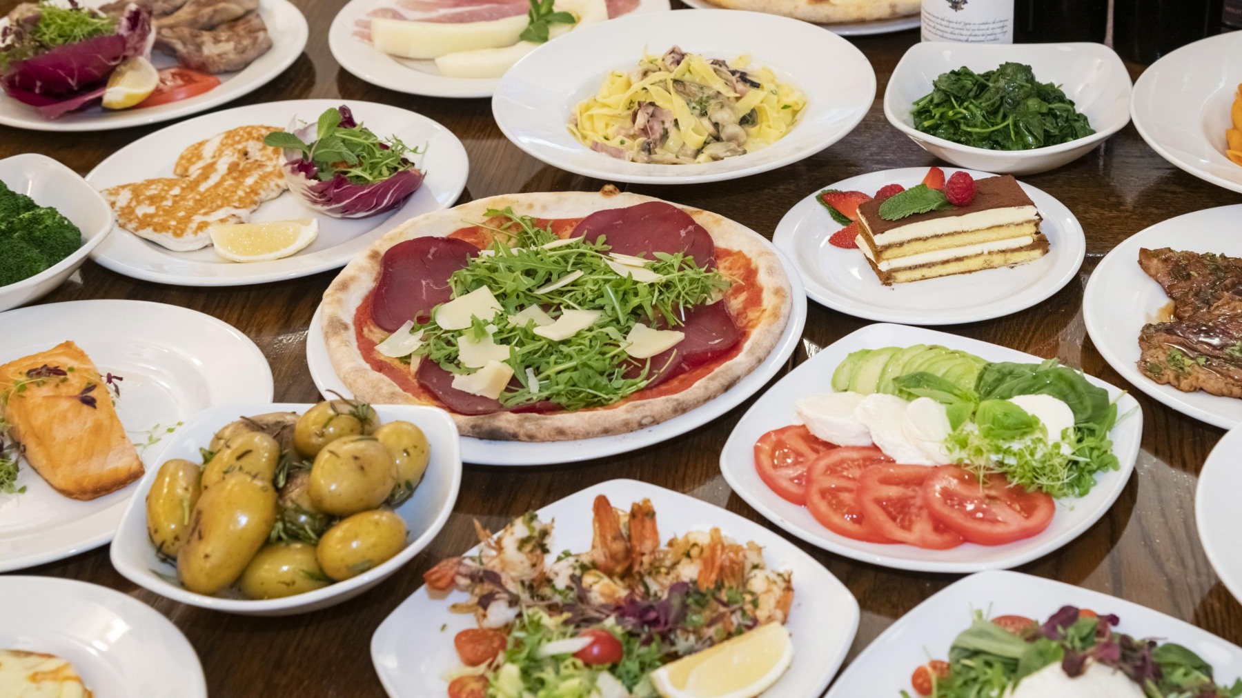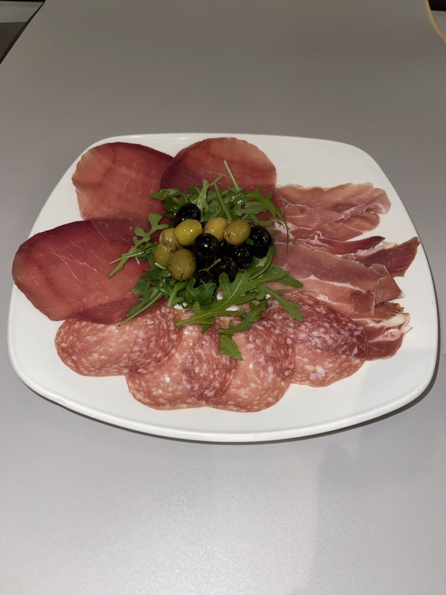 £9.50Finely sliced Parma ham, air cured beef, olives, rockets salad & Milano salami