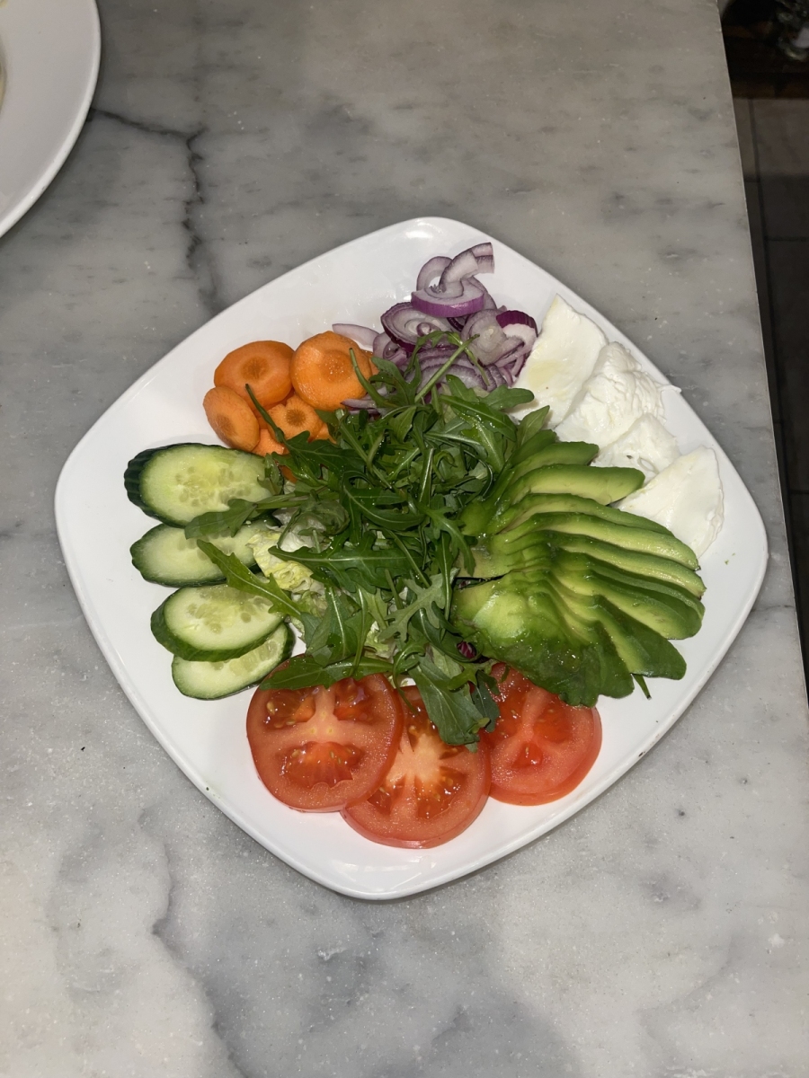 £8.40Mixed lettuce, rocket salad, avocado, tomatoes, cucumber, carrots & red onions