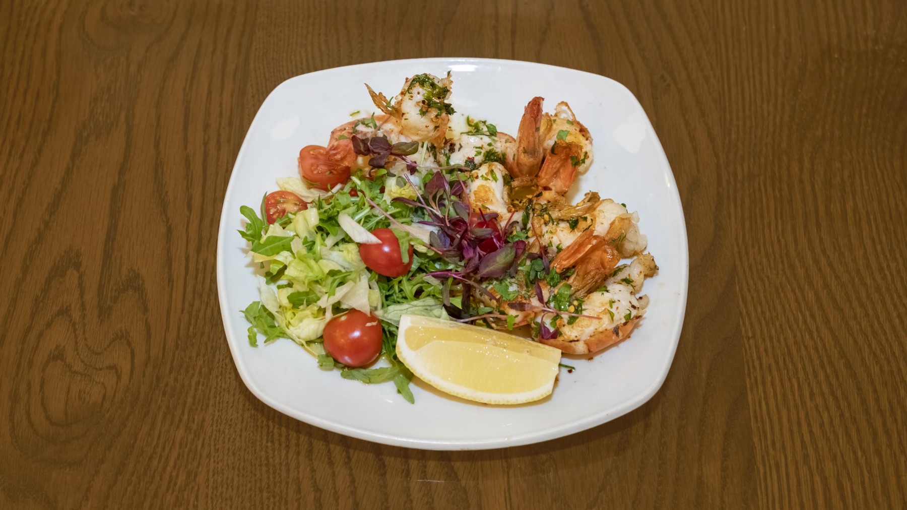 £15.90King prawn pasta cooked with garlic, olive oil, parsley, white wine & touch of tomato sauce