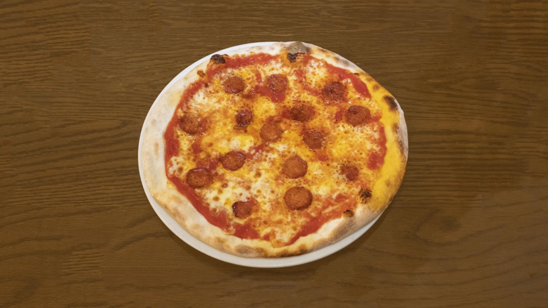 £11.90Tomato base, mozzarella simply topped with sliced pepperoni